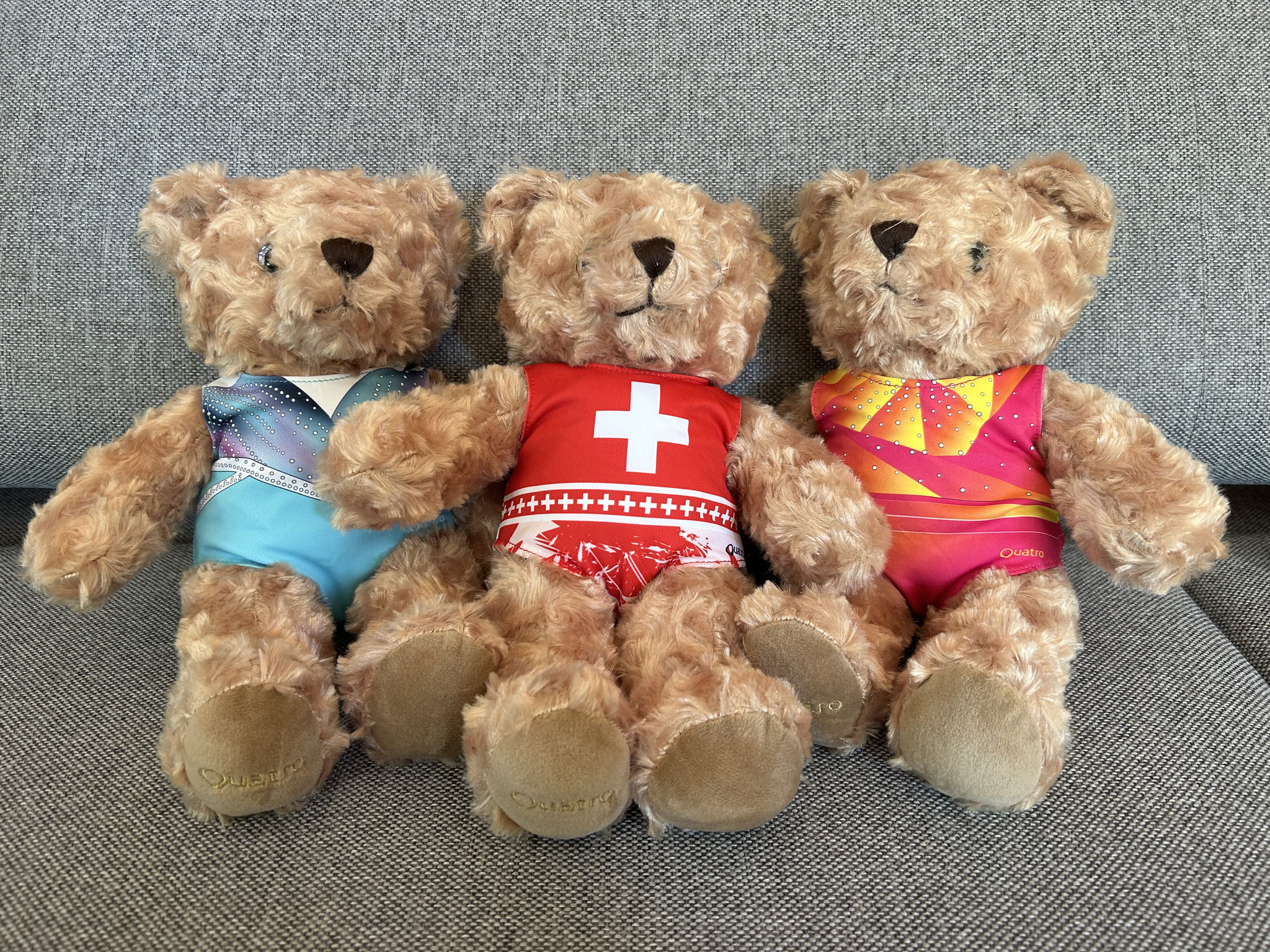 Die kuscheligen QUATRO Teddybären sind der perfekte Glücksbringer und Begleiter für alle TurnerInnen an die Wettkämpfe!