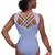 Ärmelloser Turnanzug von QUATRO mit Kreuzträger im Rückenbereich.