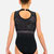 Ärmelloser Turnanzug von QUATRO mit einem hohen Halsausschnitt und Verschluss.