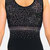 Farbe: Schwarzer Wetlook-Lycra kombiniert mit transparentem Mesh-Einsatz an der Taille und funkelnden Strasssteinen.