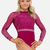 Langarm Turnanzug von QUATRO mit hohem Kragen und gekreuzten Bänder im Rückenbereich.
